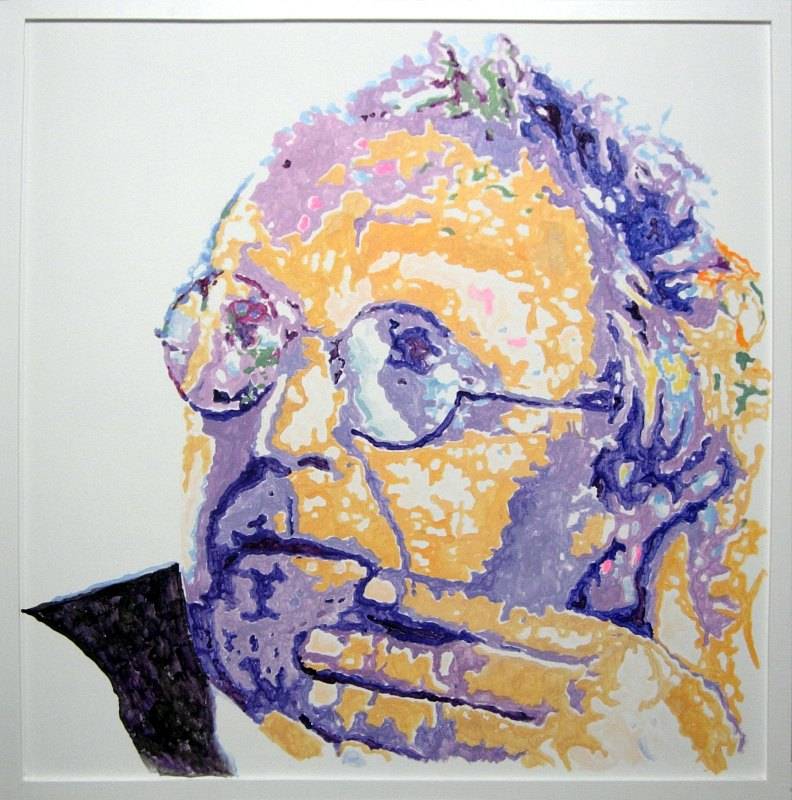 Portrait Schriftsteller 001 Nr. 293 Jahr 2005 100x100 Acryl auf Hartplatte Peter Bichsel Fr. 1200.—